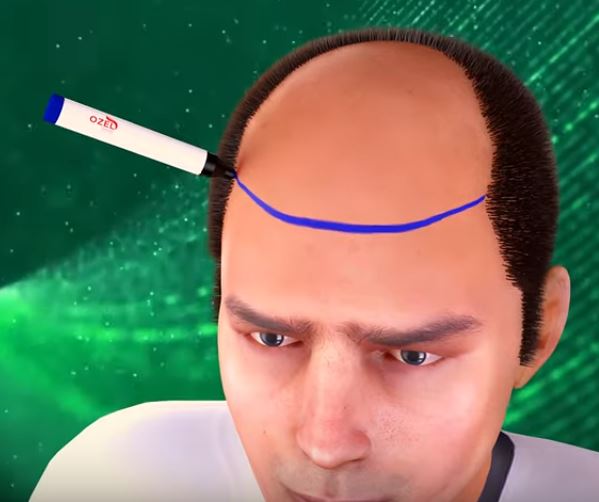- يقوم الدكتور برسم وتصميم الخط الأمامي للشعر.